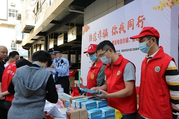 公安局丰泽分局、丰泽区东海街道办事处、东海街道滨城社区居委会到东海跨境电商园开展“我为群众办实事”暨反电信诈骗及禁毒宣传活动。
