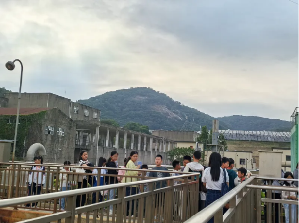 室仔前垃圾填埋场,了解生活垃圾处置工艺及流程。工作人员带领小记者们到高处,他指出远处黑色薄膜的小山包就是垃圾填埋场,该填埋场已经20年了。并向大家详细介绍填埋场技术发展的优化历史。小记者们认真听讲,认真记录,并不时提出问题,工作人员一一耐心解答。
