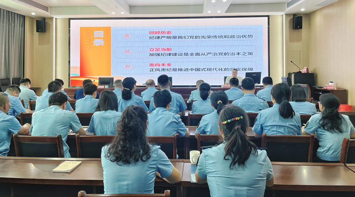 给全体党员干部授以《回顾历史,立足当前,面向未来,推进党纪学习教育走深走实》为题的党纪学习教育专题党课。