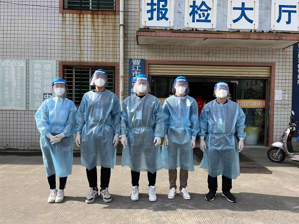 再次火速抽调10名精干力量组成另一支抗疫先锋队,兵分两路,星夜奔赴陈埭镇。其中一组5人参与协助洋埭村抗疫工作。