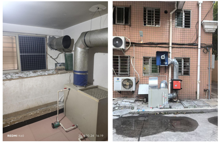 积极按照许碧瑞厅长调研指导意见,立足本部门职责和业务优势,主动作为,聚焦城市商住混杂区域内餐饮油烟治理难点,探索餐饮油烟末端治理提升工艺,组织科研单位和专家对餐饮油烟末端治理提升工艺进行深入调研,从活性炭吸附、UV光解催化氧化和水喷淋等常用有机废气处理工艺中进行筛选,综合考虑设备制作成本、运行成本、场地空间及处理效果等因素,分别在鲤城区、丰泽区及洛江区试点安装运行餐饮油烟末端水喷淋箱,取得了良好的净化成效。该套设备总占用空间不到1立方米,在应对小型餐饮店油烟净化设备安装空间小、高空排放不易、运行维护不易等难点问题具有深挖的潜力。采用水雾喷淋工艺对静电除油后的油烟进一步净化提升,不失为化解当前城市中商住混杂区域餐饮油烟扰民窘状的一大助力。