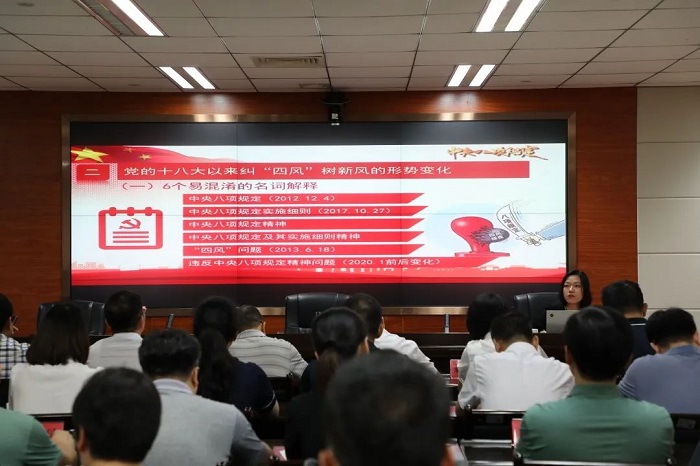 纪委监委“刺桐清风”宣讲团成员,驻市发改委纪检监察组杜筱玫同志,以《打通纠“四风”树新风的“最后一公里”》为题,并结合实际案例,为全体党员干部上了一堂纠“四风”树新风警示教育课。