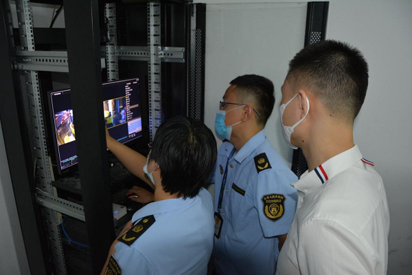 执法人员查看监控设备