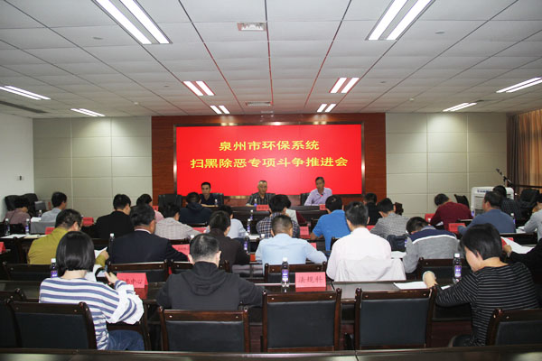 2018年12月6日上午,市环保局召开全市环保系统扫黑除恶专项斗争推进会,传达学习市委、市政府和省生态环境厅生态环境领域扫黑除恶专项斗争相关文件和会议精神,通报市违纪查办组专题会议精神,并对如何开展专项斗争提出意见。陈允彪副调研员主持会议并对专项斗争工作进行部署动员,市纪委驻局纪检组廖德信组长,市环保局党总支、相关科室、各相关直属单位负责人,各县(市、区)环保局、泉州开发区环保局、泉州台商投资区环境与国土资源局分管领导及相关科室负责人参加会议。