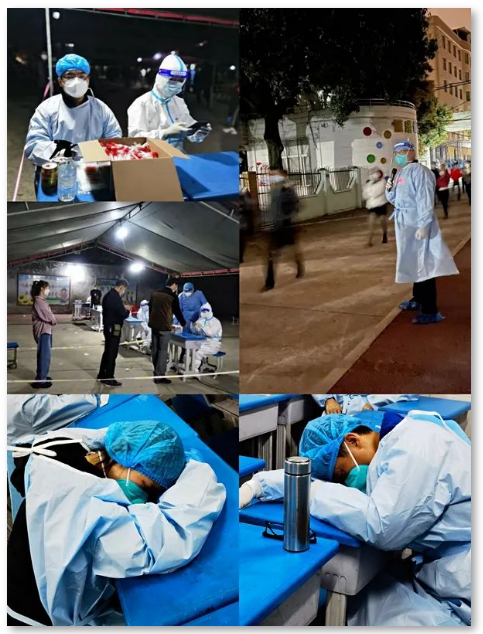 刚结束一天的战斗还未来得及休息,又临时接到采样的通知,她们没有多想,便火速奔赴核酸采样现场,分组做好秩序维持,通过分流引导,保证人员依次进入、快进快出,确保规范有序,大大提高了核酸采样的效率,圆满完成核酸采样任务。从第一天早上5点半至第二天早上8点半,一天一夜的持续奋战,大家都已身心俱疲,但大家都表示“只要能胜利,再累也坚持”,充分展现了特别能吃苦、特别能战斗、特别能奉献的环保铁军风采,撑起了疫情防控的“半边天”。