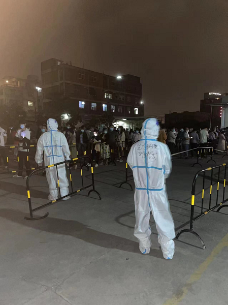 再次火速抽调10名精干力量组成另一支抗疫先锋队,兵分两路,星夜奔赴陈埭镇。其中一组5人参与协助洋埭村抗疫工作。
