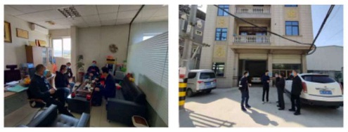 在金井镇山头村,驻村队员苏友荐协助镇下村干部对8家申请复工企业进行现场核查,并指导企业做好复工疫情防控工作,在核查中发现2家企业因防控物资准备不充分,个人健康档案居家观察没有达到14天的要求,暂时不具备复工的企业,要求尽快落实整改。