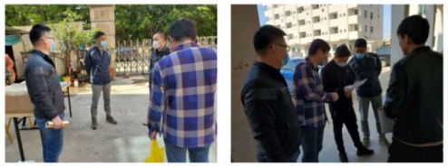 在新塘街道后库社区,驻村总领队郑天助走访并指导企业根据疫情防控情况和自身实际,采取严密防护措施,在确保员工安全健康的前提下,有序组织复工复产。督促企业落实主体责任,做好员工户籍信息登记,摸清员工复产复工前14天行程,保障防控物资储备,规范工人进出管理和作业车间防护,加强员工就餐管理,做好宿舍居家防护,尽量减少人员聚集。